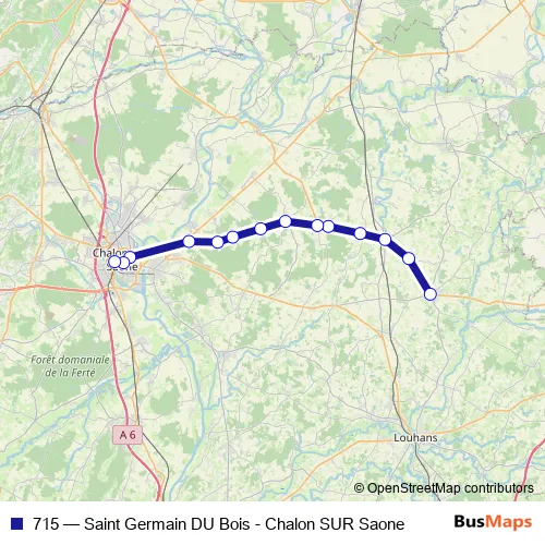 The first stop of the 715 bus route is Le Bourg and the last stop is Gare Routière. 715 (Saint Germain DU Bois - Chalon SUR Saone) is operational during everyday.