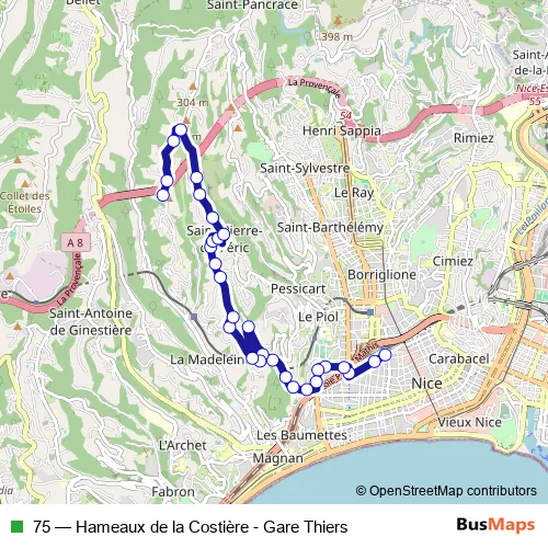 75 (Hameaux de la Costière - Gare Thiers) Bus in Nice
