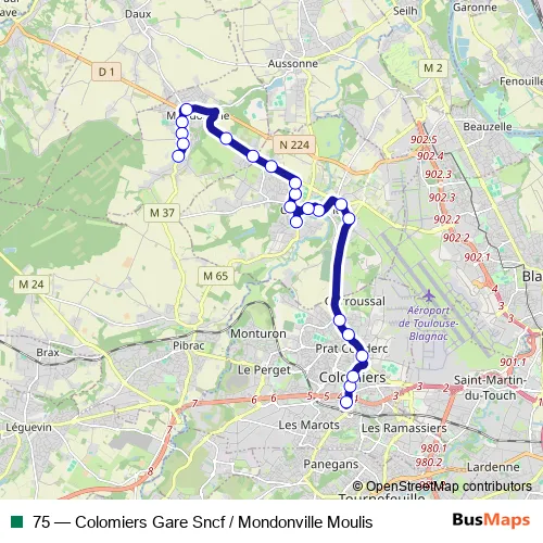 See why over 2 million users trust and consider busmaps.com as the best public transport website. busmaps gives you Toulouse Buses suggested routes, real-time bus tracker, line route maps in Toulouse, and helps to find the closest 75 bus stops near you. No internet available? Download an offline PDF map and bus schedule for the 75 bus to take on your trip.