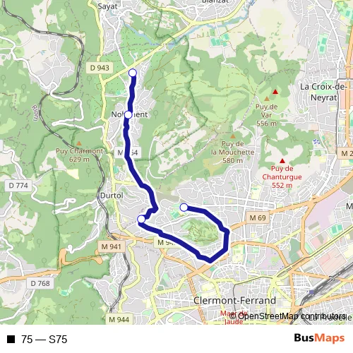 Bus 75 - S75 in Clermont-Ferrand: Stops & Timetable