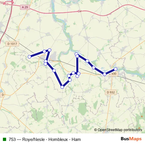 Click here to view the nearest 753 - Roye/Nesle - Hombleux - Ham bus stop.