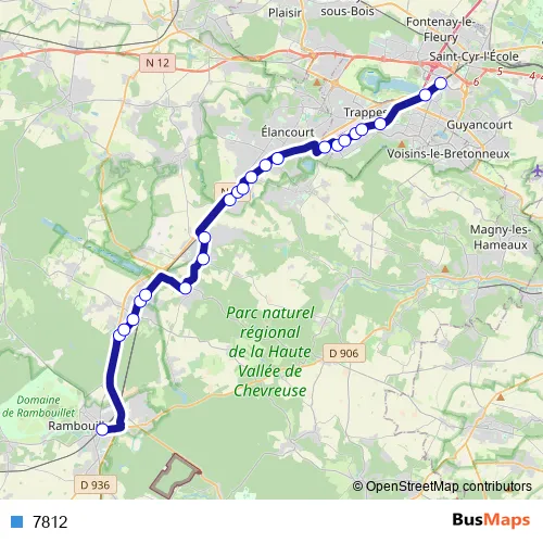 The first stop of the 7812 bus route is Gare de Rambouillet - Prairie and the last stop is Saint-Quentin - Gare. 7812 is operational during everyday.