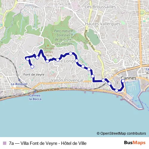 See why over 2 million users trust and consider busmaps.com as the best public transport website. busmaps gives you Cannes Buses suggested routes, real-time bus tracker, line route maps in Cannes, and helps to find the closest 7a bus stops near you. No internet available? Download an offline PDF map and bus schedule for the 7a bus to take on your trip.