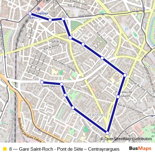 8 Bus - Gare Saint-Roch - Pont de Sète – Centrayrargues