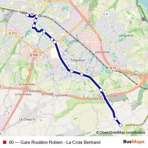 Bus 80 - Gare Routière Robien - La Croix Bertrand: Full Schedule in Saint-Brieuc