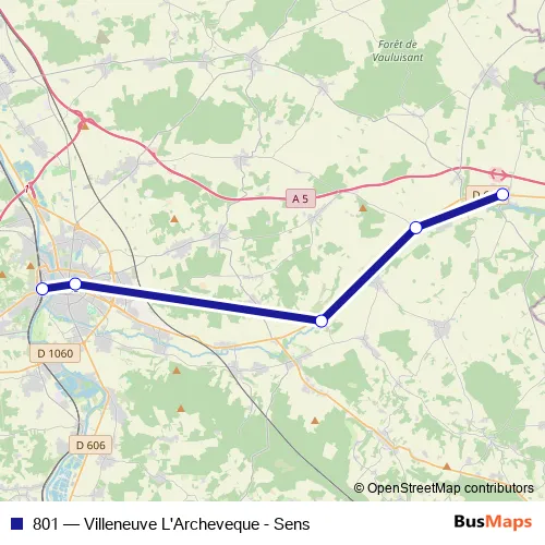 Click here to view the nearest 801 - Villeneuve L'Archeveque - Sens bus stop.