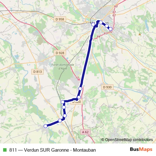 Bus 811 - Verdun SUR Garonne - Montauban: Full Schedule in Montauban