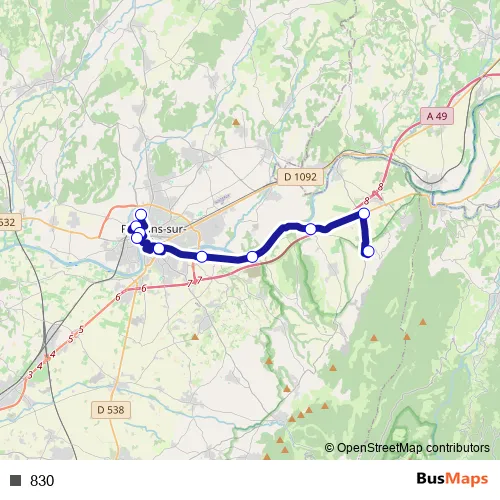 The first stop of the 830 bus route is College Debussy and the last stop is Hostun Village. 830 is operational during everyday.