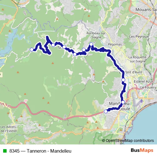 Click here to view the nearest 8345 - Tanneron - Mandelieu bus stop.