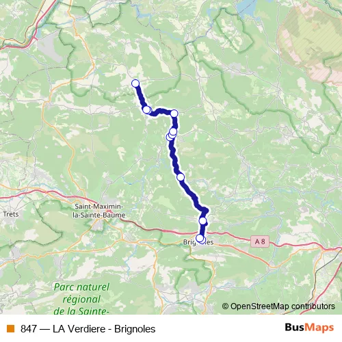 Bus 847 - LA Verdiere - Brignoles in Barjols: Stops & Timetable