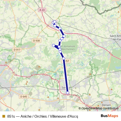 Click here to view the nearest 851s - Aniche / Orchies / Villeneuve d'Ascq bus stop.