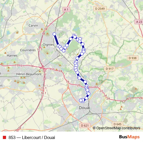 Bus 853 - Libercourt / Douai in Douai: Stops & Timetable