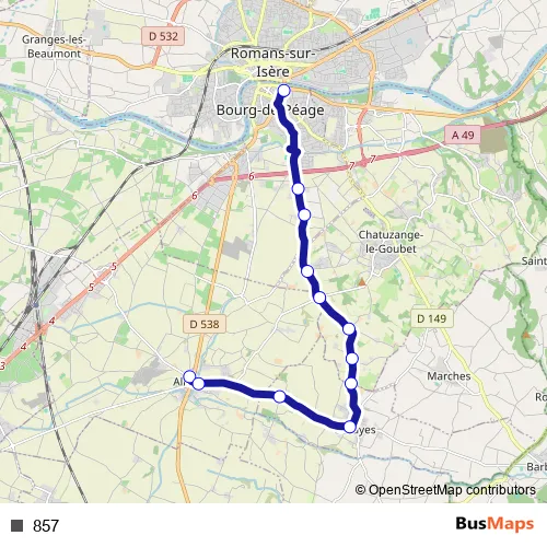 See why over 2 million users trust and consider busmaps.com as the best public transport website. busmaps gives you Valence Buses suggested routes, real-time bus tracker, line route maps in Valence, and helps to find the closest 857 bus stops near you. No internet available? Download an offline PDF map and bus schedule for the 857 bus to take on your trip.