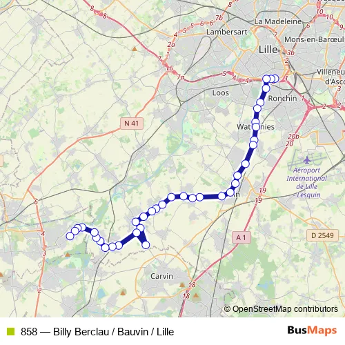 See why over 2 million users trust and consider busmaps.com as the best public transport website. busmaps gives you Lille Buses suggested routes, real-time bus tracker, line route maps in Lille, and helps to find the closest 858 bus stops near you. No internet available? Download an offline PDF map and bus schedule for the 858 bus to take on your trip.
