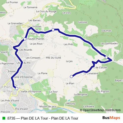 Click here to view the nearest 8735 - Plan DE LA Tour - Plan DE LA Tour bus stop.
