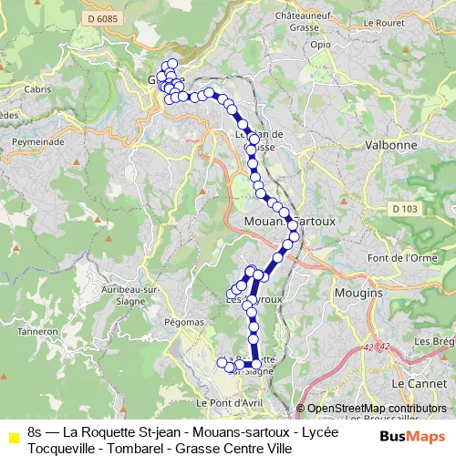 See why over 2 million users trust and consider busmaps.com as the best public transport website. busmaps gives you Grasse Buses suggested routes, real-time bus tracker, line route maps in Grasse, and helps to find the closest 8s bus stops near you. No internet available? Download an offline PDF map and bus schedule for the 8s bus to take on your trip.