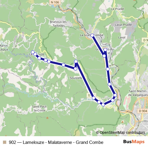Click here to view the nearest 902 - Lamelouze - Malataverne - Grand Combe bus stop.