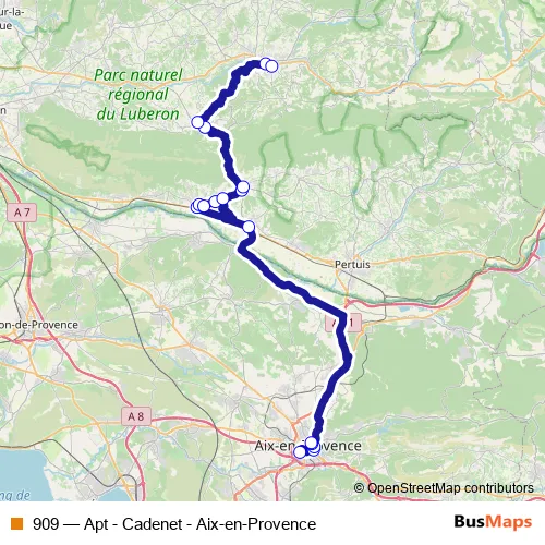 Bus 909 - Apt - Cadenet - Aix-en-Provence in Aix-en-Provence: Stops & Timetable