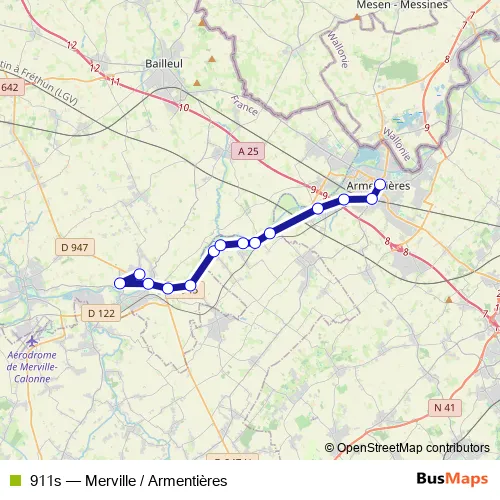 Bus 911s - Merville / Armentières Schedule in Lille
