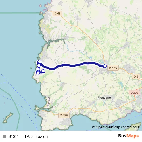The first stop of the 9132 bus route is Gare Routière and the last stop is Trézien. 9132 (TAD Trézien) is operational during everyday.