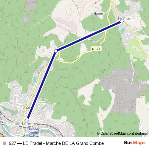 Click here to view the nearest 927 - LE Pradel - Marche DE LA Grand Combe bus stop.
