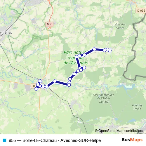 Click here to view the nearest 955 - Solre-LE-Chateau - Avesnes-SUR-Helpe bus stop.