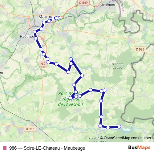 Bus 986 - Solre-LE-Chateau - Maubeuge Schedule in Avesnes-sur-Helpe