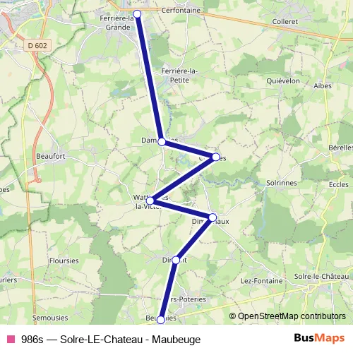 Click here to view the nearest 986s - Solre-LE-Chateau - Maubeuge bus stop.