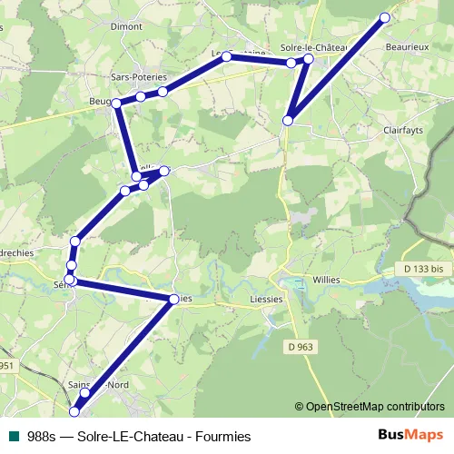 Bus 988s - Solre-LE-Chateau - Fourmies in Avesnes-sur-Helpe: Stops & Timetable