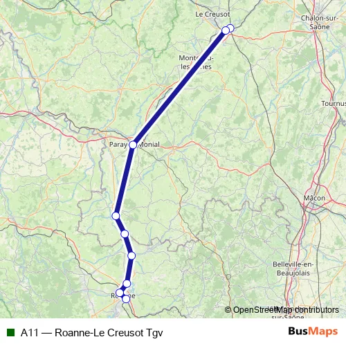 Click here to view the nearest A11 - Roanne-Le Creusot Tgv bus stop.