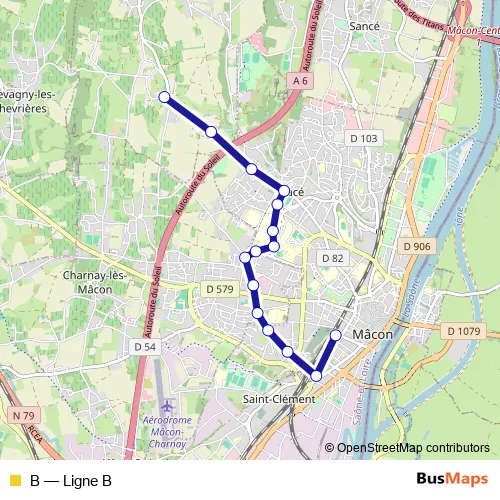 The first stop of the B bus route is Gare Mâcon Ville and the last stop is Chazoux. B (Ligne B) is operational during everyday.