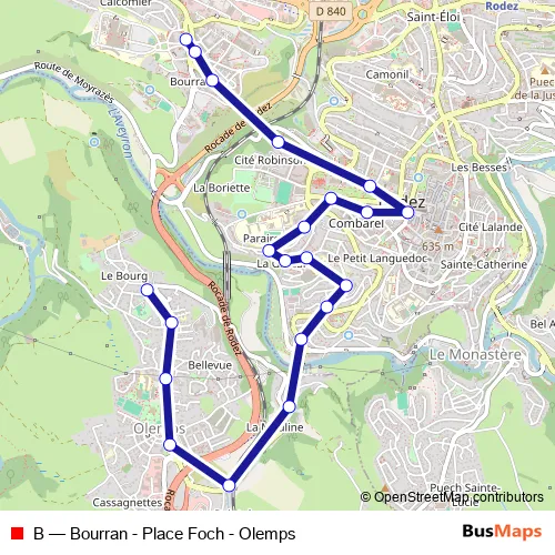 B (Bourran - Place Foch - Olemps) Bus in Rodez
