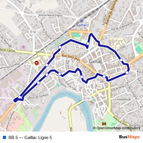 The first stop of the BB 5 bus route is Gaillac - Catalanis and the last stop is Gaillac - Catalanis. BB 5 (Gaillac Ligne 5) is operational during on weekdays.