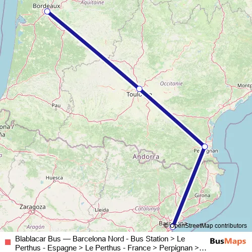Click here to view the nearest Blablacar Bus - Barcelona Nord - Bus Station > Le Perthus - Espagne > Le Perthus - France > Perpignan > Toulouse > Bordeaux City Centre bus stop.