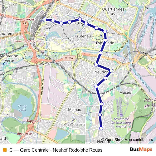 See why over 2 million users trust and consider busmaps.com as the best public transport website. busmaps gives you Strasbourg Trams suggested routes, real-time bus tracker, line route maps in Strasbourg, and helps to find the closest C tram stops near you. No internet available? Download an offline PDF map and bus schedule for the C tram to take on your trip.