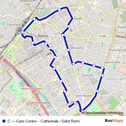 See why over 2 million users trust and consider busmaps.com as the best public transport website. busmaps gives you Reims Buses suggested routes, real-time bus tracker, line route maps in Reims, and helps to find the closest C bus stops near you. No internet available? Download an offline PDF map and bus schedule for the C bus to take on your trip.