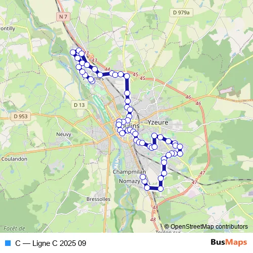 See why over 2 million users trust and consider busmaps.com as the best public transport website. busmaps gives you Moulins Buses suggested routes, real-time bus tracker, line route maps in Moulins, and helps to find the closest C bus stops near you. No internet available? Download an offline PDF map and bus schedule for the C bus to take on your trip.