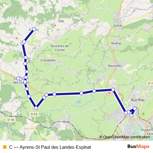 Bus C - Ayrens-St Paul des Landes-Espinat: Full Schedule in Aurillac