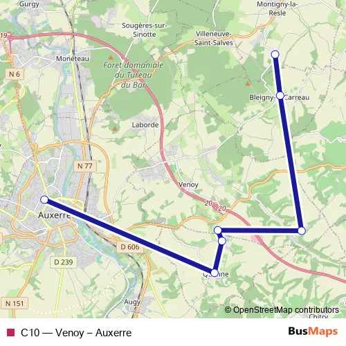 Bus C10 - Venoy – Auxerre: Full Schedule in Auxerre