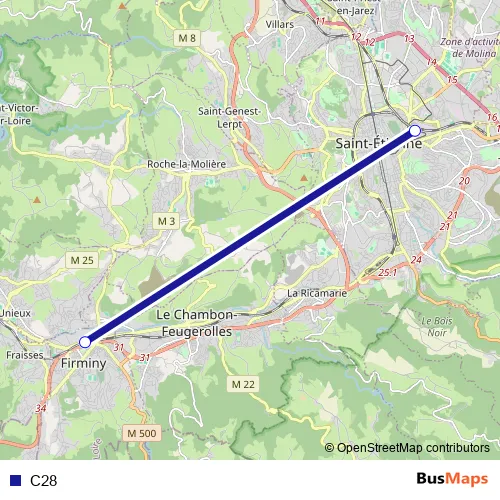 See why over 2 million users trust and consider busmaps.com as the best public transport website. busmaps gives you Saint-Etienne Buses suggested routes, real-time bus tracker, line route maps in Saint-Etienne, and helps to find the closest C28 bus stops near you. No internet available? Download an offline PDF map and bus schedule for the C28 bus to take on your trip.