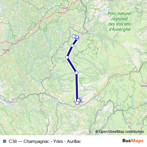 Click here to view the nearest C38 - Champagnac - Ydes - Aurillac bus stop.