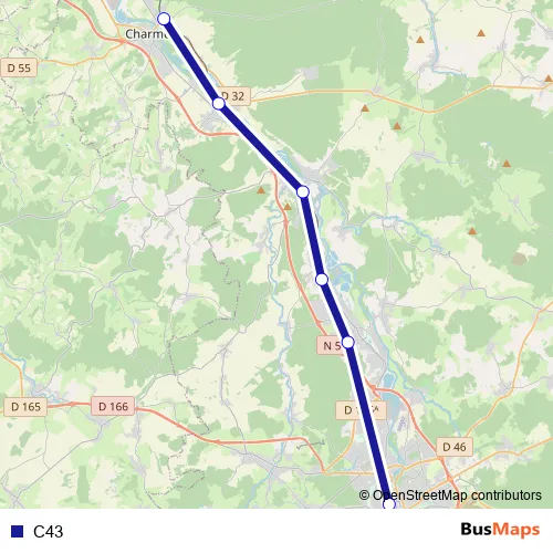The first stop of the C43 bus route is Charmes and the last stop is Épinal. C43 is operational during on weekdays.