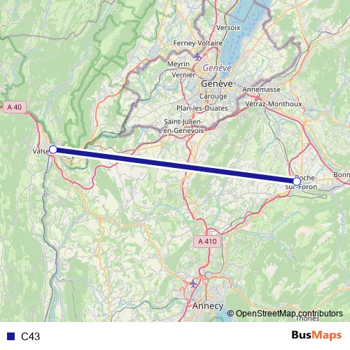 The first stop of the C43 bus route is La Roche-sur-Foron and the last stop is Bellegarde-sur-Valserine. C43 is operational during on weekdays.