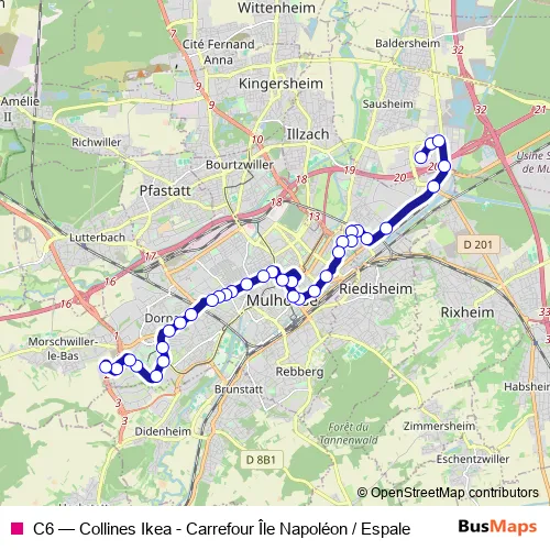 Bus C6 - Collines Ikea - Carrefour Île Napoléon / Espale: Full Schedule in Mulhouse