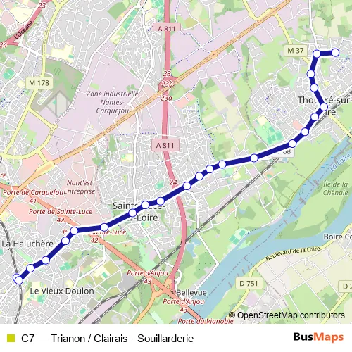 Bus C7 - Trianon / Clairais - Souillarderie in Nantes: Stops & Timetable