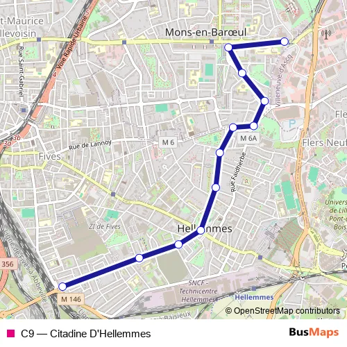 See why over 2 million users trust and consider busmaps.com as the best public transport website. busmaps gives you Lille Buses suggested routes, real-time bus tracker, line route maps in Lille, and helps to find the closest C9 bus stops near you. No internet available? Download an offline PDF map and bus schedule for the C9 bus to take on your trip.