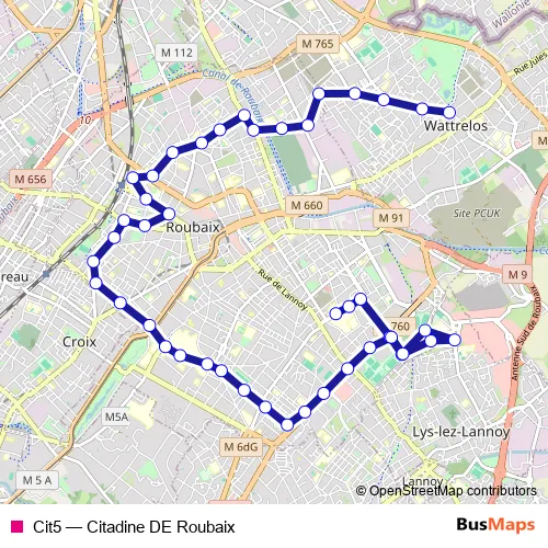Click here to view the nearest Cit5 - Citadine DE Roubaix bus stop.