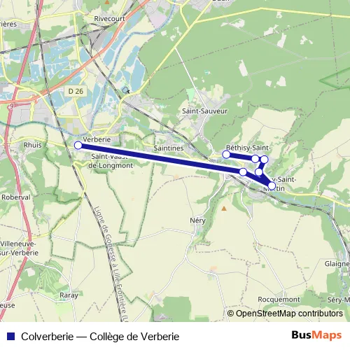 The first stop of the Colverberie bus route is Collège d'Aramont Verberie and the last stop is Clos Cadot Bethisy-ST-Pierre. Colverberie (Collège de Verberie) is operational during on weekdays.
