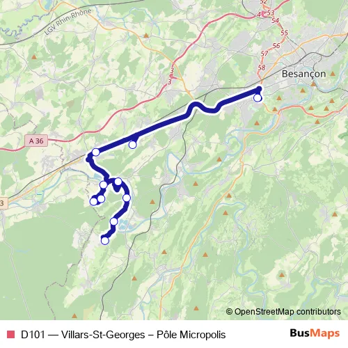 See why over 2 million users trust and consider busmaps.com as the best public transport website. busmaps gives you Besancon Buses suggested routes, real-time bus tracker, line route maps in Besancon, and helps to find the closest D101 bus stops near you. No internet available? Download an offline PDF map and bus schedule for the D101 bus to take on your trip.