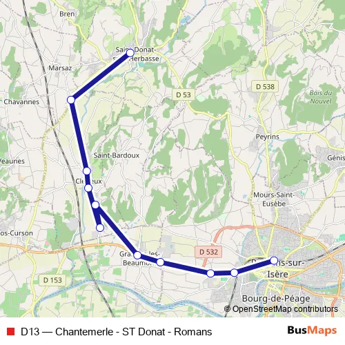 Click here to view the nearest D13 - Chantemerle - ST Donat - Romans bus stop.